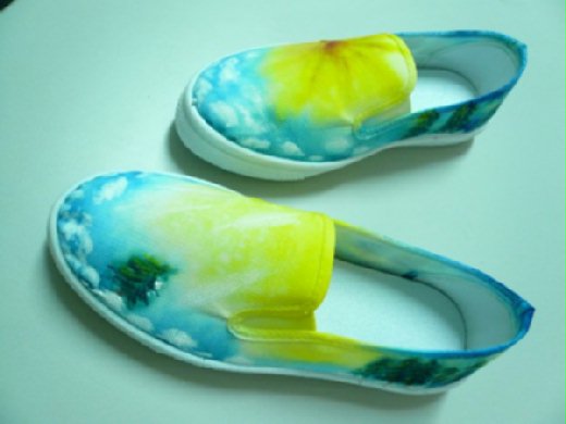 好友蓉兒多才多藝,彩繪一雙小松樹布鞋,並且為文章設計插圖,倆人嘗試作手繪本,期待也能像得獎一樣順利。