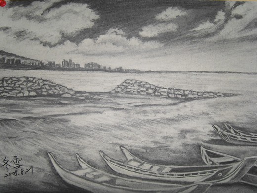 幸運之神眷顧著我,每當心情像海水低潮露出沉土的時候,朋友就會霎時出現。溼地是畫畫當下的沉重心情,為了克服外界的影響而浪費老師的苦心和美景,勉強讓雙手提筆,雙肩重得像是挑著一根扁擔,扛起兩畚斗石瑰。之後,我們偶遇在msn上,朋友的打字速度不慢,然卻停下來讓我快速打字發洩,當我停下一分鐘喘氣時,螢幕上瞬時亮出一大段文字。(尊重友人要求,不登名字;做為與你的分享和我心頭上的清泉。)
