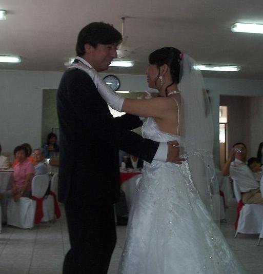 因為老公是智利人,整個結婚過程算是中西合併方式,一方面遵循東方古禮吃湯圓、跪別父母、丟扇子等等,一方面也融合西方的囍宴開場華爾滋舞、香檳交杯酒等。