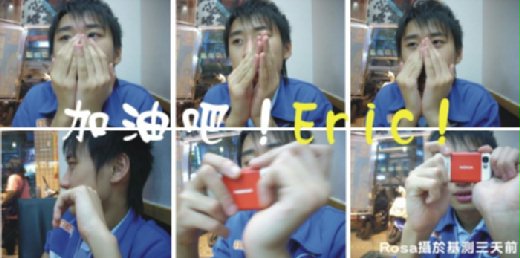 雖然說是陪公子讀書也只能角落自處,於是在外面觀賞順便側錄許軒豪的練習實況,小弟教畢又趕場去蘆洲家教,我和Eric便告退到附近麥當勞,Eric拿出作文模擬考卷要我面授機宜,只剩三天頂多給他應考觀念,諸如段落分明、正確措詞、語意流暢,莫張冠李戴、濫用成語等等,在他的試卷上訂正幾段邏輯性比較不明的句型,還有重複過多的形容詞。