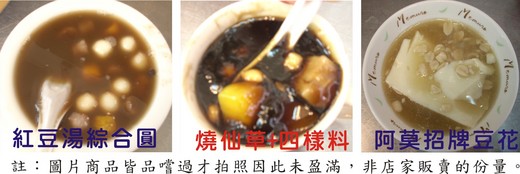 為什麼要經營豆花攤呢?因為梁老闆娘也就是莫媽,是一位勤儉持家手藝又巧的台灣女性,起初是想多做一項副業貼補家用,後來有口皆碑備受肯定,不知不覺地就賣了二十年。天冷,所以燒仙草比較吸引我,三十五元可以選四種料,芋頭、蕃薯、珍珠粉圓通常是我個人在鑑定甜品好吃與否的指標物,假如其一不盡理想,就沒有光顧第二次的意願了,第四項雪蓮子則是莫媽推薦的。