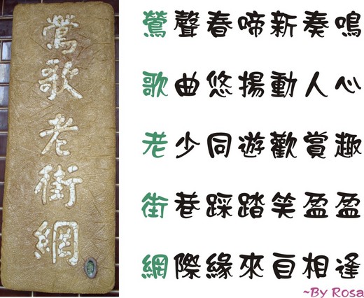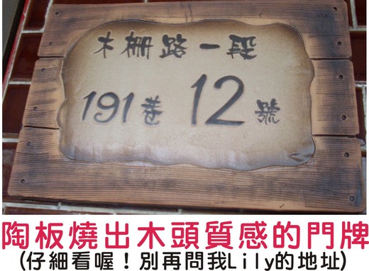 對陶藝的鍾愛來自學生時期的學習,雖沒出色的成就倒是練會了要命的品賞(不知不覺對品味相當堅持),會和Lily一拍即合果然其來有自,「鶯歌老街網」的陶板招牌就是個不錯的作品,這麼大面積的陶板燒出來能不裂、不翹角、沒變型,實屬不易,門牌陶片仿木片的質感也相當的好,兩者往牆上一掛,裡頭是在賣啥的一目了然。