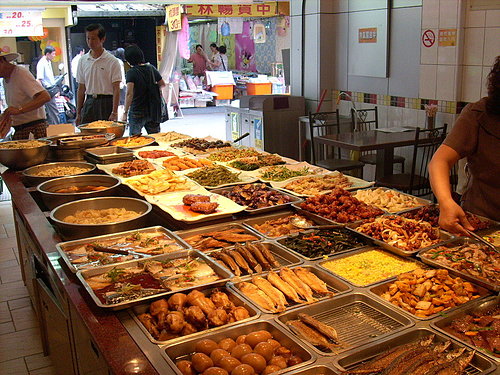 Lily一到我們便迫不及待先拿餐盤搶食了,約三、四十道手路菜、家常菜供消費者選擇,眼花撩亂地每樣都想嚐嚐看,本來擔心剛剛那波人潮之後會沒得選,還好廚房師傅菜出的夠快,幾乎全都熱騰騰的冒著美味熱氣的新鮮快炒,沒等去停車的初三兄,兩女愛吃的先夾便就定位祭五臟廟去了。