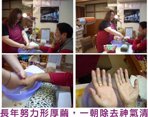 問Book服不服務男客?有錢賺當然一視同仁!聽說她已經服務過家族中某位帥哥,將兩隻慘不忍睹的腳丫給修護的漂漂亮亮的,初三兄不好意思脫鞋亮相,不過好奇的體驗了手部去角質,在海鹽的細揉之下男人的手也煥然一新,了不起吧!