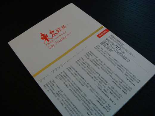 最近迷上了一本書,叫「東京鐵塔」,近來晚上的時間幾乎都在看這本書,它容易讀,沒有繁褥的詞藻,就這樣的輕輕淡淡的說起他的家人,他和媽媽之間的相處,他和爸爸之間的微妙,卻緊緊抓住了我的心,看到愛不釋手,看到後來自己還邊看邊掉淚,我想就算我在看個幾遍,我想我還是會融入他的故事,還是會再次掉淚。再來,故事的背景時代,那種帶有濃濃的40.50年代,也讓我感到有一份親切感。雖然我不是那各年代的人,可是小時候看著爸爸媽媽照片,聽他們講起小時候的點點滴滴,也是讓我在「東京鐵塔」這本書中,找到更相似爸爸媽媽小時候生活的貼近感。