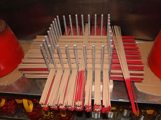 香, 預先排好12枝的需要. 大概數量偏多, 從一大把香之中不能很快的算好拿取所需, 就用此法. 蠻值得各寺廟參考此法. 只不過 , 要有人力預作準備 ...