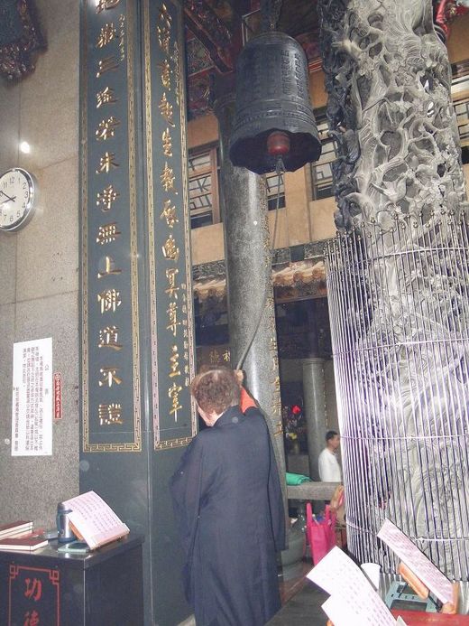 ~看人一邊念經一邊在敲鐘! 還不忘向對面指示!