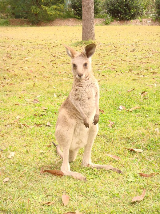 有六隻大袋鼠帶著兩隻小袋鼠出來覓食 好可愛ㄚ