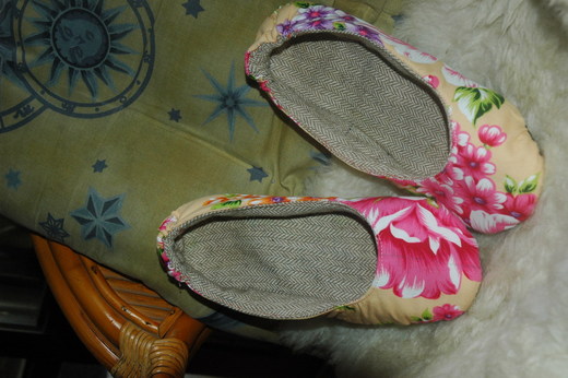 剩下的棉布就做一雙客家姑娘的花布拖吧!