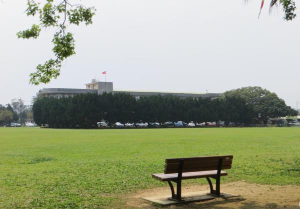 北區水資局大草坪旁的老榕樹,樹枝糾結蒼勁。