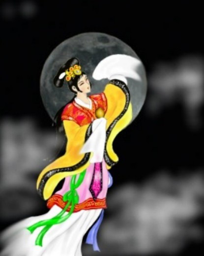 噢!好一首淒涼美麗的七言詩!每到中秋,人們總要對著當空皓月,如泣如訴地歌詠嫦娥。這個苦命女子代言人,眼見夫君成為暴力野心份子到處魚肉百姓,心痛之餘,遂自我犧牲,偷食西王母賜予后羿的「長生九轉還丹」;告別至愛,羽化成仙飄零奔月,從此孤獨永生…..