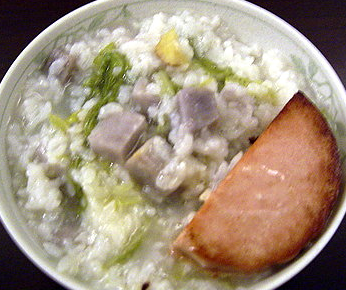 「差不多,是『山芋玉糝羹』,蘇東坡發明的有沒有?不過家裡糙米沒了,就用白米了。」
