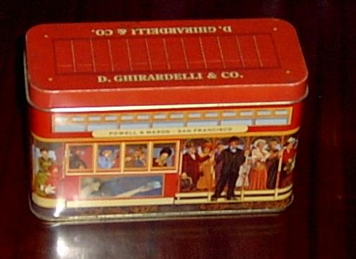 雖然我說Ghirardelli的樣子好看些,說實在話,這內容物的巧克力真的不怎麼好吃,有名歸有名,裡面裝的還真引不起我的興趣,就留了這個可愛的電車鐵盒作為紀念。