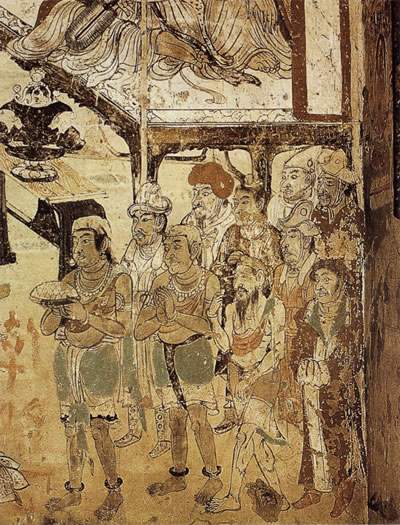 在堆積如山的寶物中,雖有波斯所朝貢的駿犬、石國進獻的大驢、百濟高一、二尺的珊瑚樹、大食國的琥珀、車渠、瑪瑙瓶、火珠、康國的琉璃、白象、天竺的無食子、香附子、訶黎勒、泥婆羅國的胡椒、蓽撥、石蜜、千年棗、甘露桃等,這千奇百怪、價值連城的禮物之中,宰相李林甫的進獻物卻最是引人注目;他遠從西方的神秘王國拂菻(東羅馬帝國),弄得兩頭金銀獅子,各關在一只大鐵籠中,供人觀賞。