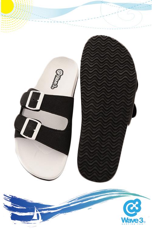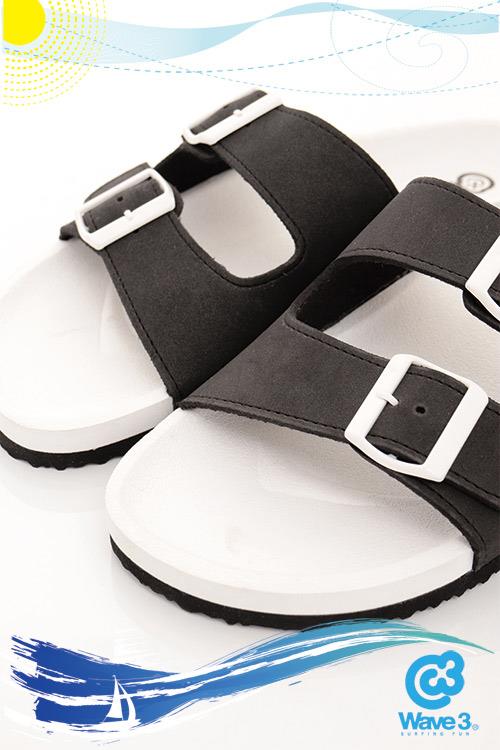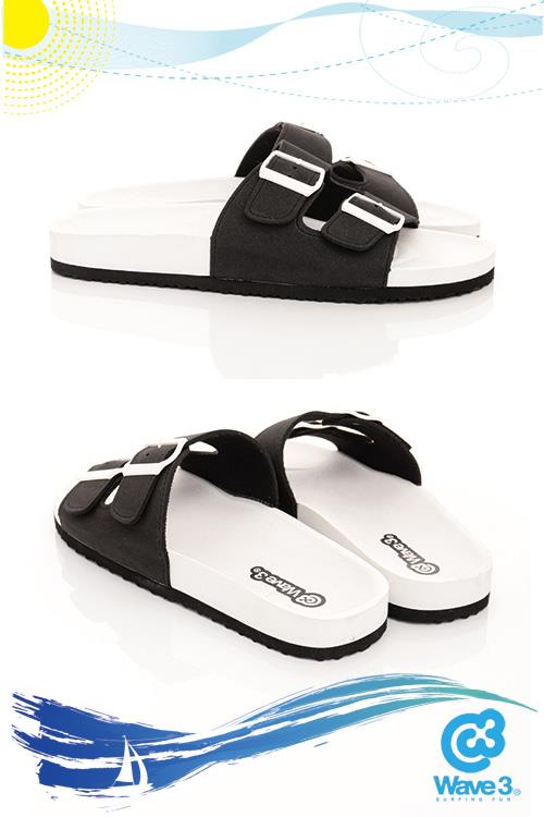 WAVE 3 (男) - 健康航道 金屬雙扣足弓功學休閒拖鞋 - 白底黑網路人氣商品