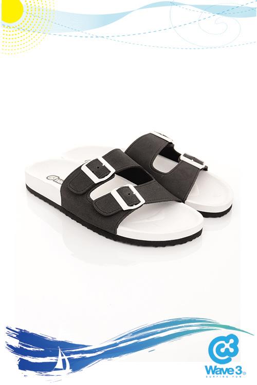 WAVE 3 (男) - 健康航道 金屬雙扣足弓功學休閒拖鞋 - 白底黑特價