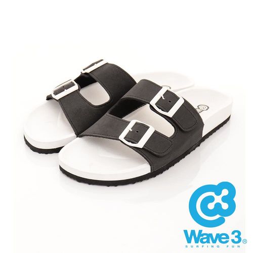 WAVE 3 (男) - 健康航道 金屬雙扣足弓功學休閒拖鞋 - 白底黑好用