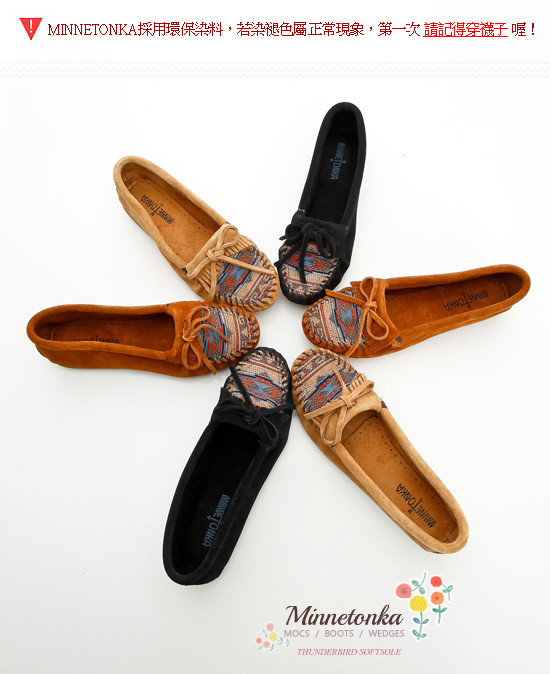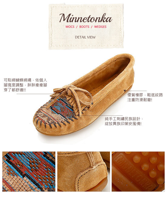 MINNETONKA 沙棕色印地安刺繡麂皮莫卡辛 女鞋-471K心得分享