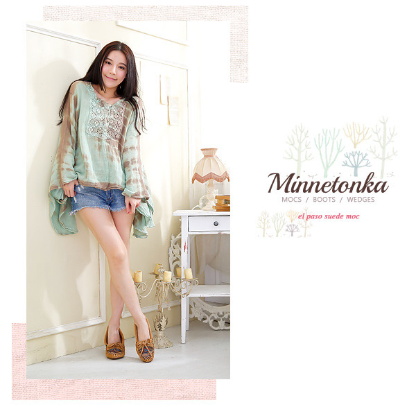 今天就要來推薦我不久前在ETMALL東森購物網買的MINNETONKA 沙棕色印地安刺繡麂皮莫卡辛 女鞋-471K