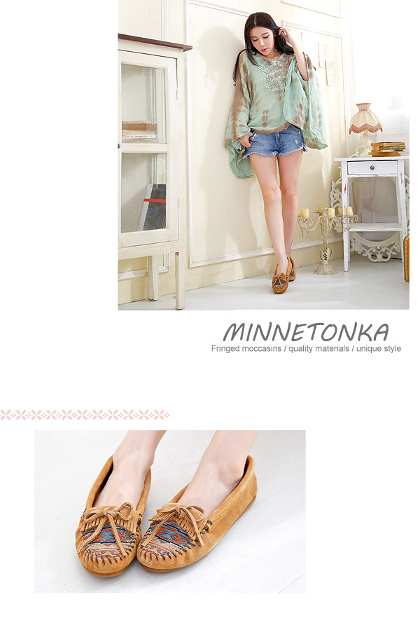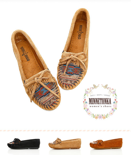 MINNETONKA 沙棕色印地安刺繡麂皮莫卡辛 女鞋-471K在網路上也是超多人推的