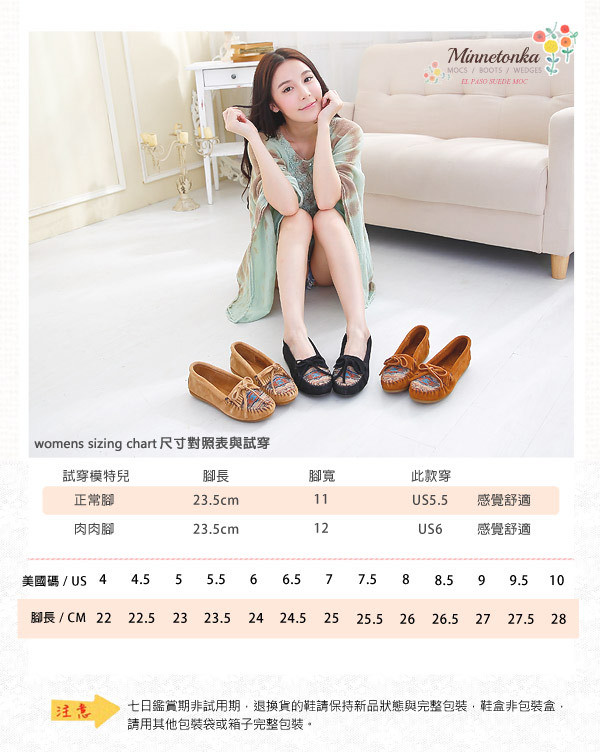 MINNETONKA 沙棕色印地安刺繡麂皮莫卡辛 女鞋-471K使用心得