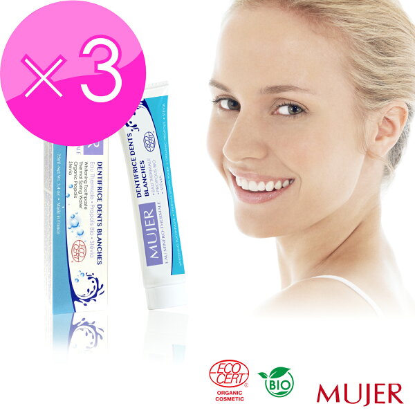 【MUJER】熱爾活泉有機美白牙膏3入組 ★法國原裝(75gx3)