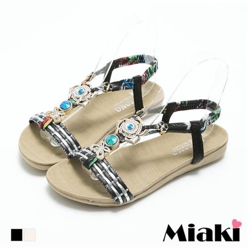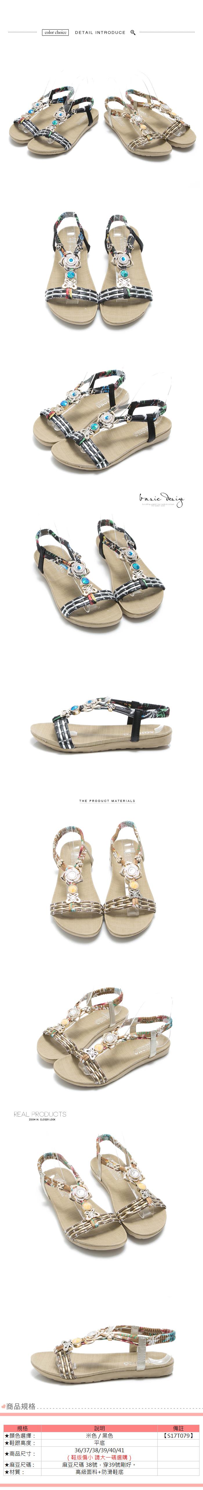 豆豆鞋穿搭Miaki 涼鞋南洋迷人玫瑰綴飾露趾平底涼拖-米色 / 黑色破盤