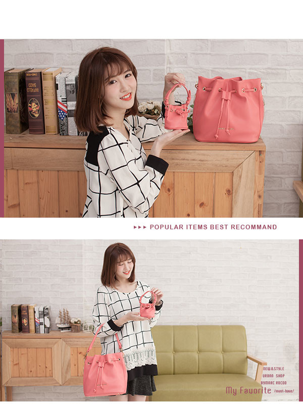 MARC ROCOO 經典款百搭水桶包附迷尼水桶吊飾-117(蜜糖粉)分享