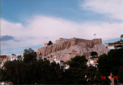 就這樣我們彼此用著不甚流利的英文溝通著,一路上到也聊了一個多小時.當她問到我到雅典(ATHEN)時要怎麼去HOTEL.我給她看客人為我訂的飯店就在古蹟衛城(ACROPOLIS)底下,她瞧了瞧我手上的住址及我的大行李箱,皺了眉頭說: