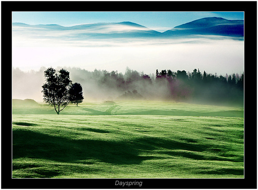 退後的青翠再遙遠的另一頭會合,那霧氣緩緩拉起薄幕,使得焦點亦不再清晰。