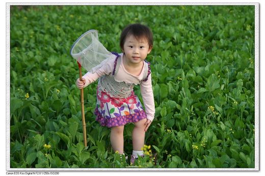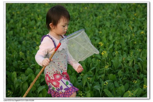 媽媽不知哪來的勇起,一股腦兒沒經思考的就自告奮勇的帶著小捷和表哥扛著網子下田去抓蝴蝶。