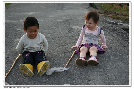 玩累了之後,小捷和表哥竟然大喇喇的坐在柏油路上,真是可愛極了。