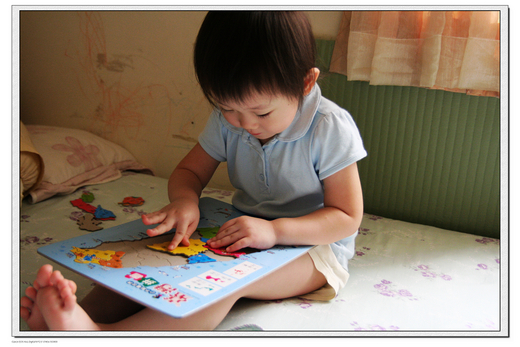 之前,我們家有一個台灣地圖的拼圖,小捷好一陣子沒有拼了,最近心血來潮,又把它搬出來了!