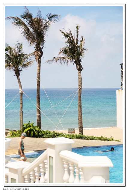 藍到不切實際的天空,一望無際的湛藍海灣,在白沙灘上踏踏浪或是在傘柱下躺著,渡假的氛圍一整個濃烈起來,超有Fu的~