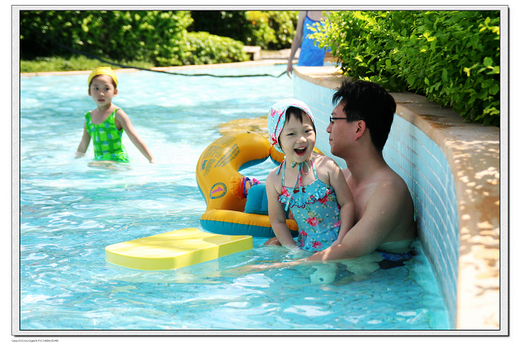 小捷自己早就訂好她的行程,先換上泳裝游泳去,由於昨天粗心的爸爸讓她喝了好幾口水,所以今天小捷一再地提醒她爸爸不要再讓她喝到水。