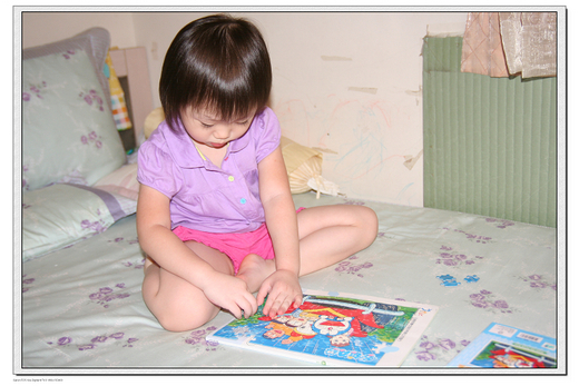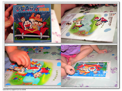 這個拼圖媽媽對它真的是完全沒轍,每一片都長的好像,媽媽沒有耐心拼完成,真的很難;沒想到小捷小小年紀卻可以獨力完成這幅拼圖,而且小捷拼的速度很快,20分鐘以內就可以搞定,媽媽真是佩服的五體投地了。
