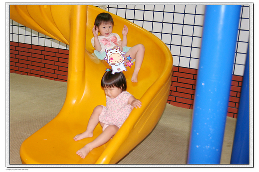 在一旁陪伴小孩們溜滑梯的燕姨(我們絕不會讓小孩獨自在遊戲室)馬上告訴媽媽:「你不用擔心,她剛剛馬上很大聲的吼回去:『你不要拉我啦~』