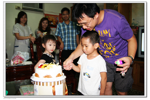 中場休息,大家移師到客廳幫表哥唱生日快樂歌,表哥開心極了!