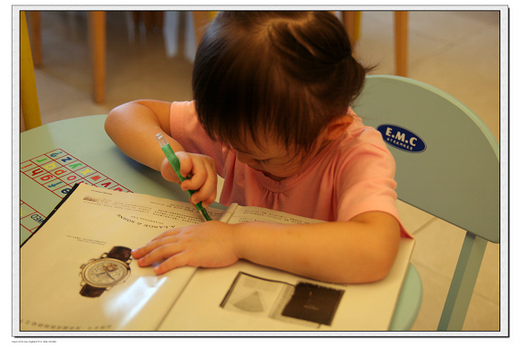 從上週起,週休假日小捷開始有少少量的家庭作業,為了早日養成小捷書寫的好習慣,爸爸直嚷著要買書桌給寶貝女兒。趁著假日去逛賣場,在HOLA還真的有看到同事兒子的那一款書桌,我還是維持原先的看法,不過就幾塊木頭而已,到底是貴在哪?
