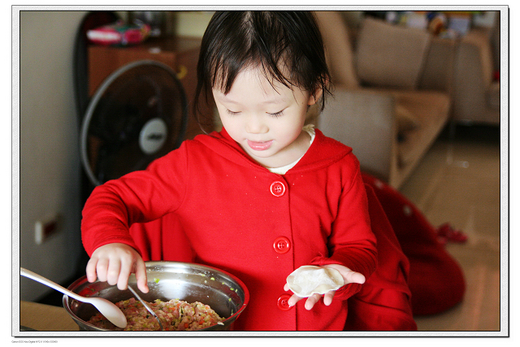 雖然,媽媽包的水餃很好吃,但小捷卻從不賞臉,只愛跟著媽媽包水餃,卻不愛吃。於是,媽媽也效法老師的精神,額外的準備小捷愛吃的玉米,讓她包她自己要吃的玉米水餃,果然,小捷破例的吃了三顆她自己包的玉米水餃。