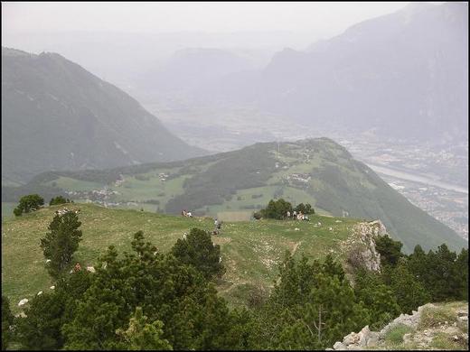 天氣其實已經熱得像夏天了。即便這兒的四季不按咱們祖先的二十四節氣規律走,剛過小滿就熱到三十多度暑氣逼人也太不正常了些。連日的燥熱讓空氣十分污濁,濃濃重重的擠壓在整個山谷裡,即便登高望遠,能見度也只在方圓幾公里內。天清氣爽時的那種朗朗晴天或許可遠眺瑞士邊境上的白朗峰,現在這蒼茫混濁、不知是霧抑或煙塵的一片迷濛,卻讓人連腳底下的山城都看不真確。