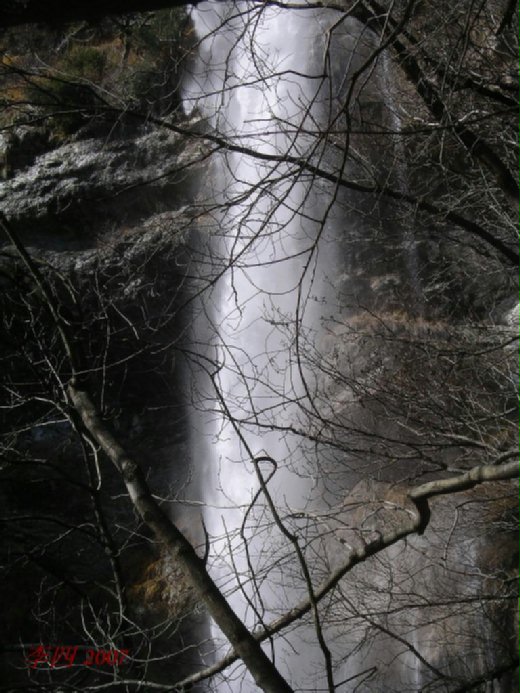 儘管乍暖還寒,看似乾枯的樹梢都已經抽發新芽,充滿生命力的大自然自由地展現著無窮的生機。連日雨後的步道上都是泥濘,後人踩著前人蹂躪過爛泥的足跡,危顫顫地緩緩向瀑布靠近。狂奔的水流在空中大量而豪邁地噴灑霧氣,遠遠地我們已經視線模糊,髮絲上滿是水珠,再也無法繼續前進。