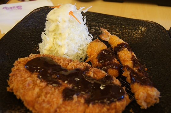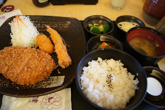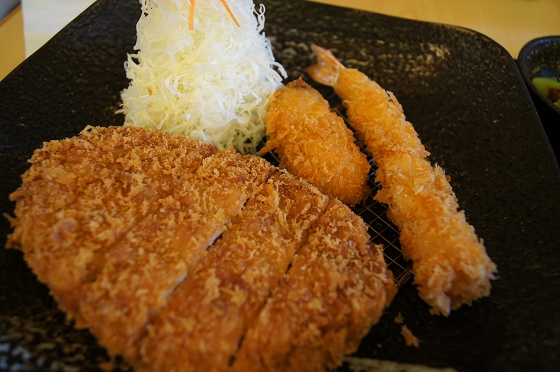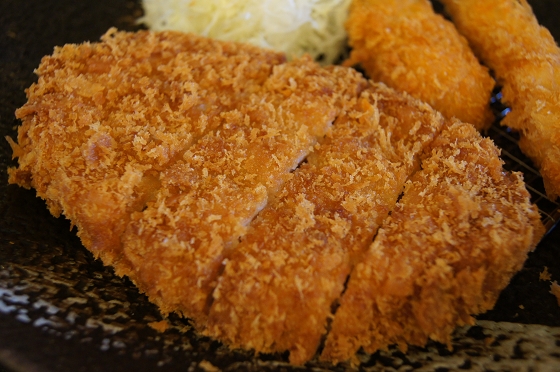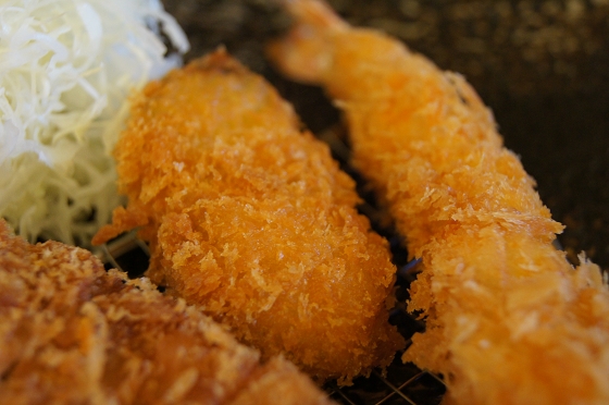 主菜:炸物三合一,大里肌炸豬排、炸牡蠣和炸蝦。