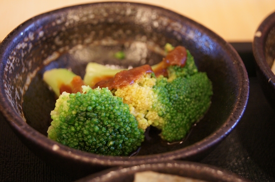 小菜方面有:清燉花椰菜、酸甜蓮藕和辣味豆腐,三種完全不同的口味,多種層次的口感體會。