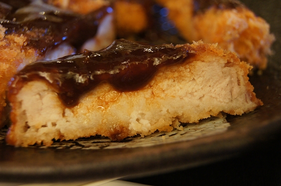 大里肌炸豬排用溫體豬肉,裹上蛋汁去沾日本進口的麵衣去炸,外皮酥脆,裡面的豬肉多汁又香,厚度大概有3公分左右,口感滿足又好吃,阿廣超愛他們的炸豬排!