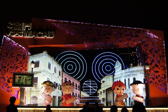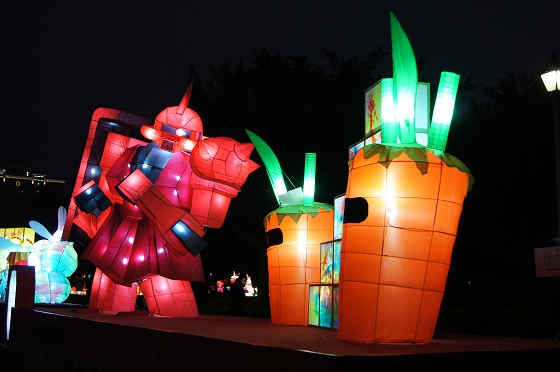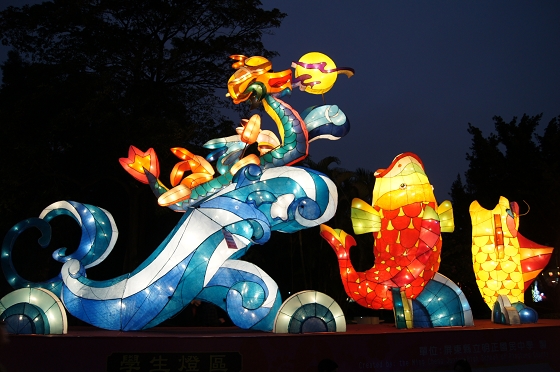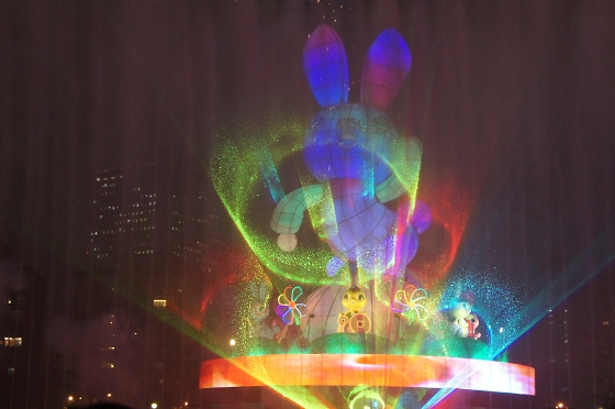當然,造型燈籠雖然吸引人,但最吸引人的,還是主燈秀呀!今年的主燈秀很酷,燈光搭配水花,以祝福的話語為主題,精采又迷濛,沒攝影起來真是太可惜啦!明年一定要好好準備才行。