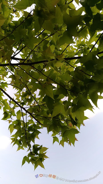 快樂的當下, 看到隠身在綠意中的楓葉,哇! 綠色的它也好美!