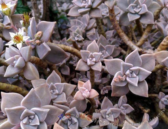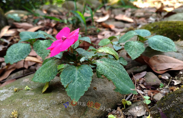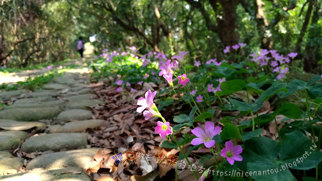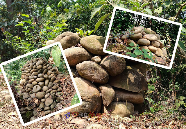 沿路好多石堆,據說是志工們,堆起來當花台用。
