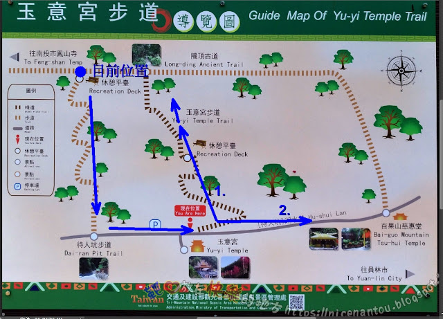 雖有告示牌,卻沒有地圖,我們往玉意宮方向走。