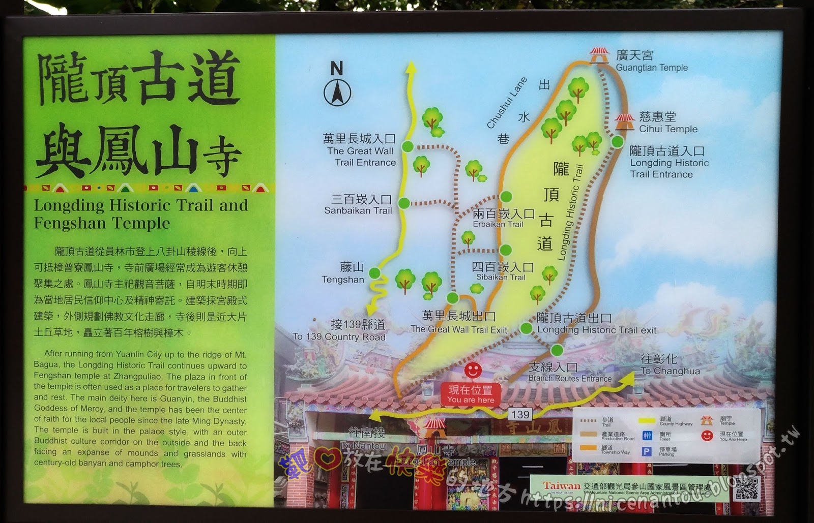 這兒的導覽圖示意著還有步道上山回到隴頂古道。